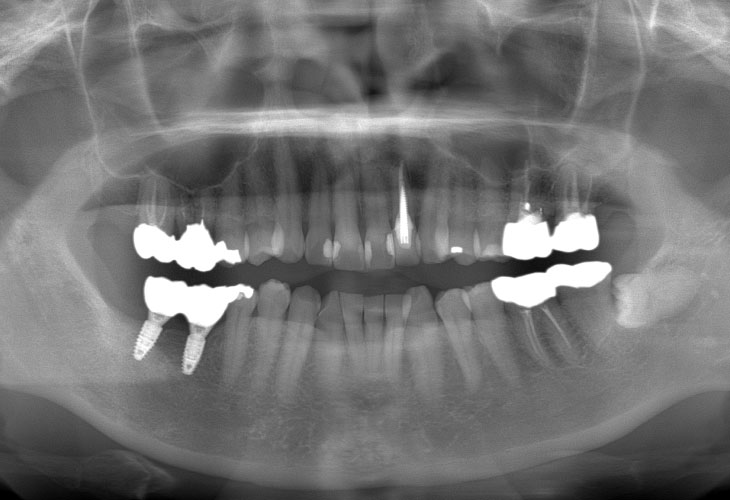 右下奥歯の歯が無い。インプラント治療をしたい。 |